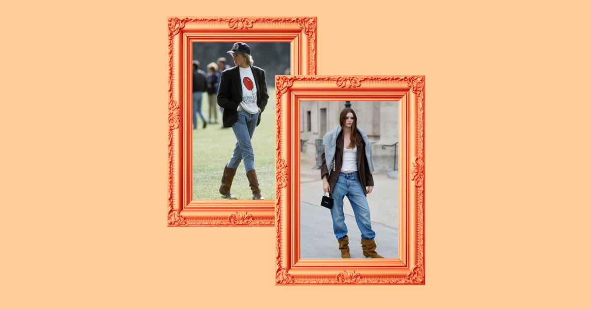 Сапоги на невысоком каблуке были одним из любимых фасонов обуви принцессы Дианы в 1980-х. Она часто носила их с платьями-пальто и миди-юбками, и эти образы вполне соотносятся и с актуальными трендами.