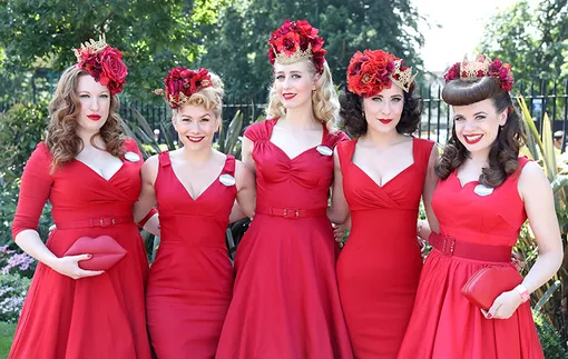 Пятеро подруг решили нарядиться в едином стиле, образовав настоящий розарий.