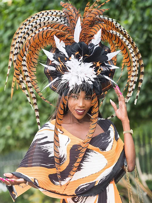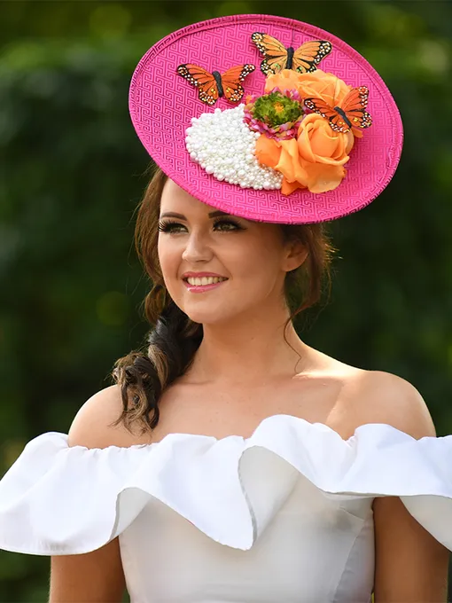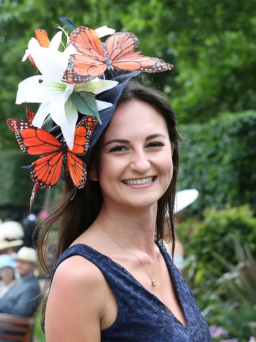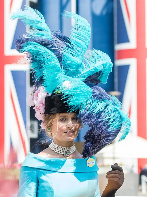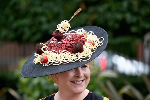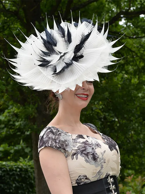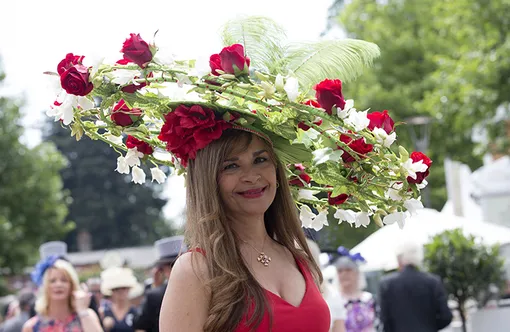 Шляпа — неотъемлемая часть дресс-кода скачек, поэтому некоторые приглашенные дамы стараются выделиться любым путем, например, сажают себе на голову целый павлиний хвост.