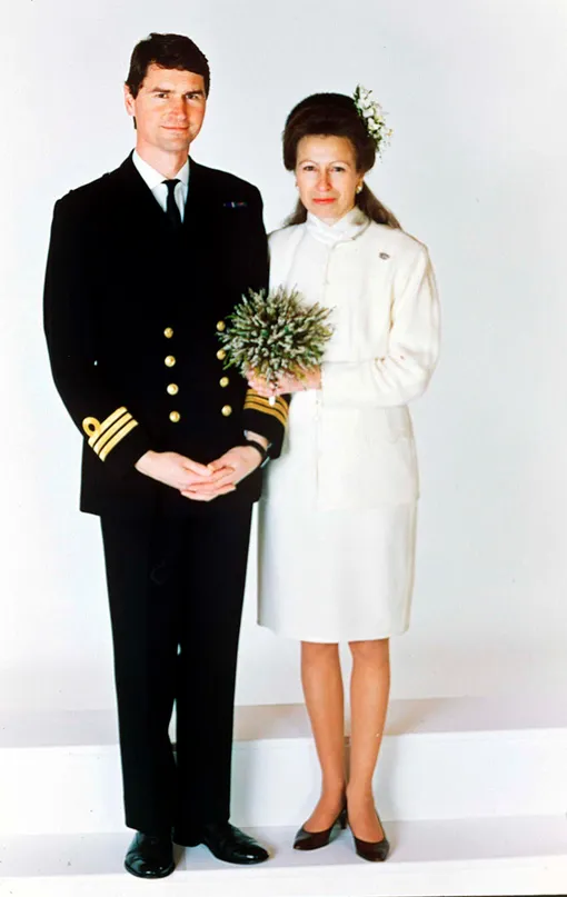 Мы уже поняли, что выходить замуж у принцессы Анны получалось хорошо, а вот выбирать платья для церемоний – не очень. Для второй свадьбы принцесса выбрала белый костюм неизвестного дизайнера. Если не приглядываться, юбка и жакет напоминают врачебный халат. Ну и завершают образ черные туфли. Напомним, что это свадьба, а не корпоратив в офисе.