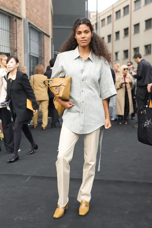 Показы коллекций 2025 года только укрепили эту тенденцию. Объемные сумки, которые модели несли в руках, можно было увидеть на подиумах у Acne Studios, Alexander McQueen, Dolce&Gabbana, Miu Miu, Loewe, и The Row. Редкий момент, когда красота и практичность идут рука об руку! А вместительный клатч – это одновременно и функциональность, и шик.