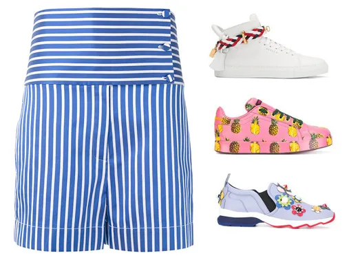 Для долгих прогулок по парку или вдоль моря можно выбрать шорты в актуальную в этом сезоне полоску. К ним же — подобрать кроссовки под настроение: спокойное, веселое или романтическое.