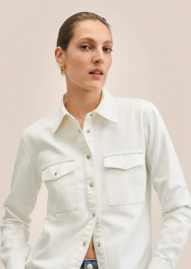 Модная белая рубашка для женщин из денима – один из мастхэвов текущего сезона. Наш фаворит – джинсовая рубашка молочного цвета с нагрудными карманами. Круто смотрится с черными или голубыми джинсами. Также ее можно надеть поверх топа с шортами или короткой юбкой. Еще одна стильная идея: используй белую джинсовую рубашку как базу в брючном костюме.