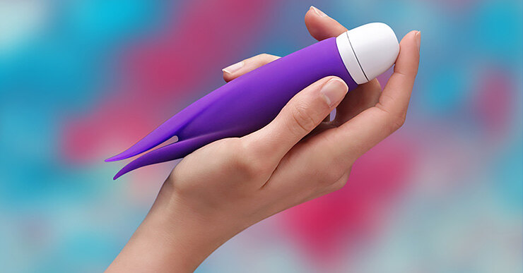 У него действительно очень забавная форма: у основания — стандартный, просто довольно маленький вибратор, зато на кончике он раздваивается в два мягких лепестка. Мне понравился его задорный фиолетовый цвет. Пожалуй, мой любимый цвет секс-игрушек. Розовый слишком ванильно, черный — слишком брутально, а вот фиолетовый — в самый раз.
