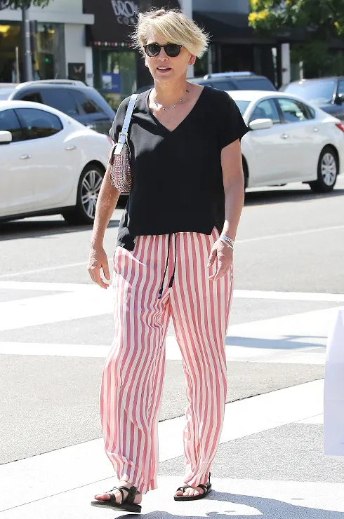 Звезда «Основного инстинкта» всегда приковывает к себе внимание на светских мероприятиях и кинопремьерах — Шэрон выглядит настолько шикарно, что легко даст фору 20-летней старлетке. Но Стоун на красной дорожке и Стоун в реальной жизни — это практически два разных человека: никаких декольте, шпилек и эффектного макияжа, только оверсайз и естественность!