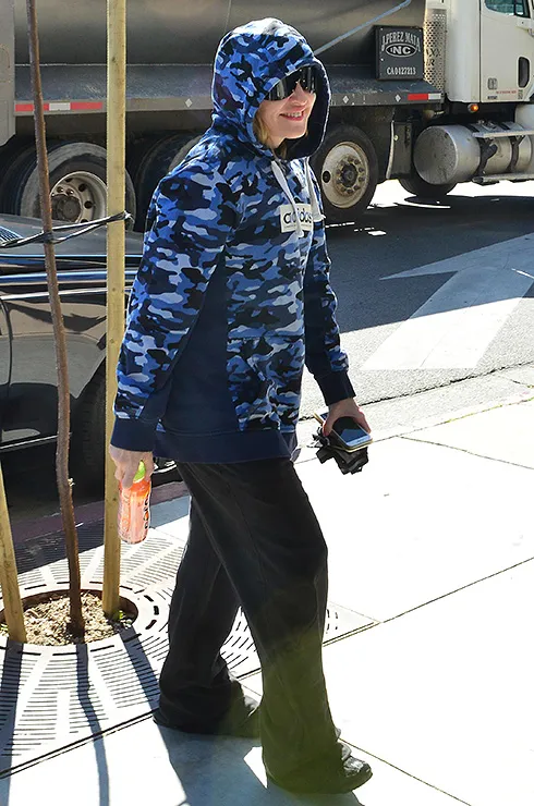 Не меньше способна удивить своим будничным стилем и Мадонна. Если на красной дорожке певица позирует в ультраоткровенных нарядах и смело демонстрирует обнаженную грудь, то за ее пределами звезда прячется в спортивных костюмах, огромных толстовках и «мужских» ботинках.