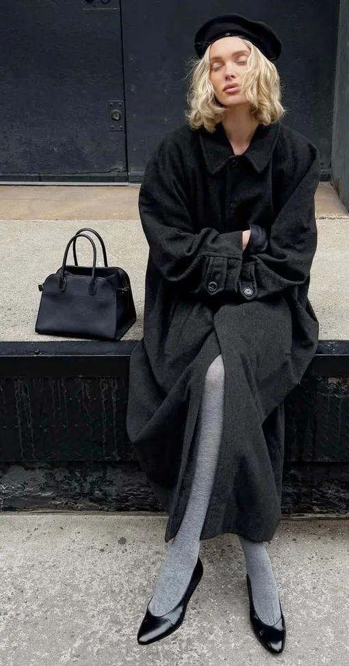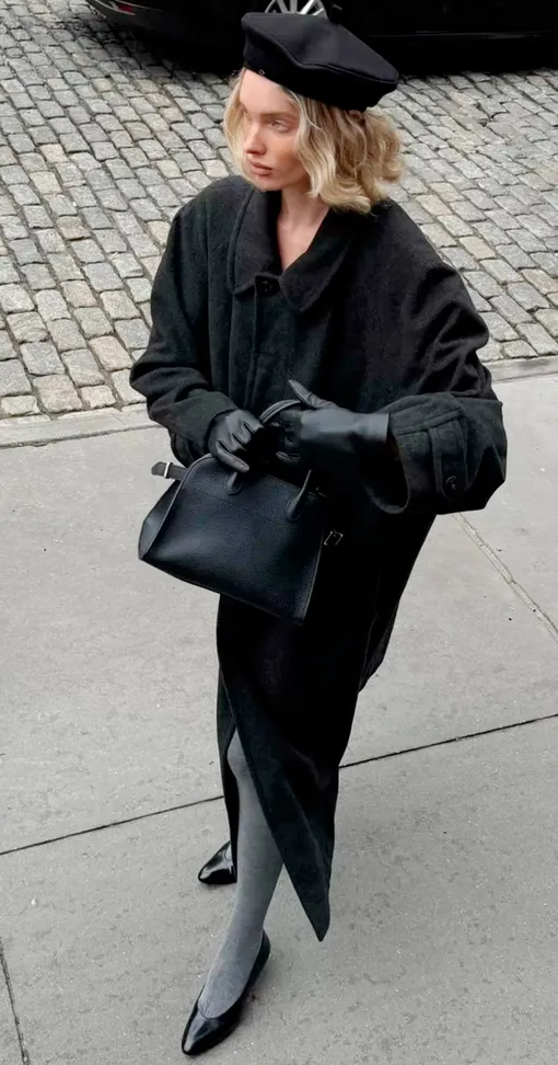 Минималистичный лук Эльзы Хоск с черным объемным пальто и серыми колготками, который она продемонстрировала еще в начале года (и собрала немало лайков), остается источником вдохновения для нас.