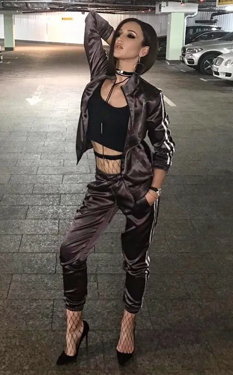 В этом образе Бузова попробовала объединить сразу несколько «горячих» трендов (всё ту же сетку, спортивные вещи и украшение-чокер), но наметившуюся гармонию нарушили туфли-лодочки, которые стоило бы заменить на кроссовки или ботинки на массивной подошве.