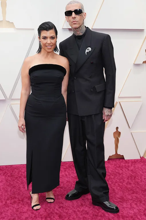 А вот к этой парочке вопросы всё-таки возникают. Во-первых, их выбор траурно-чёрного выглядит безосновательным. Если Пенелопа расцветила образ говорящими деталями и украшениями, то Кортни и Трэвис выглядели меланхолично. А кончики волос, которые Кардашьян, видимо, хотела уложить с «мокрым эффектом», отвлекали внимание от платья Mugler. Серьги так вообще пропали на общем фоне, зато очки и «запузырившиеся» брюки Баркера особенно выделились. В общем, далеко не лучший couple-look, а уж на фоне Милы Кунис и Эштона Кутчера...