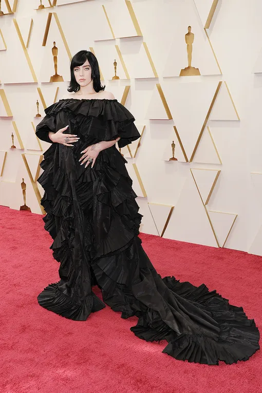 От иконы подростков (да и не подростков, будем честны) ожидать можно было что угодно. Билли могла бы прийти в толстовке (бунтарский характер никто не отменял), в вечернем платье с корсетом (оммаж ее знаменитой сексуальной фотосессии), в бесчисленных воланах Gucci... Вариантов было много, и Айлиш выбрала третий. Получилось нечто среднее между безразмерной одеждой, которой певица благоволила еще 2 года назад, и кутюром, на который она переключилась совсем недавно. Милейший черный «торт», немного готический. Переходный период, в общем.