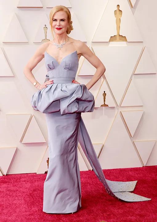 На вечеринке Armani перед «Оскаром» Николь появилась в строгом чёрном брючном костюме, так что мы уж было подумали, что актриса продолжит эту неожиданную чёрную линию. Но нет, наконец-то новый цвет! Вслед за Джессикой Честейн красавица Кидман вышла к фотографам в серо-голубом Armani Privé. Выбором модного дома мы не удивлены — уже который год актриса сотрудничает с ним и регулярно выгуливает на «Оскаре» наряды бренда. А вот то, что Николь всё так же plays safe и выбирает вечную классику, это странно. С другой стороны, кому ещё нужно что-то доказывать? Шикарная!