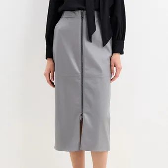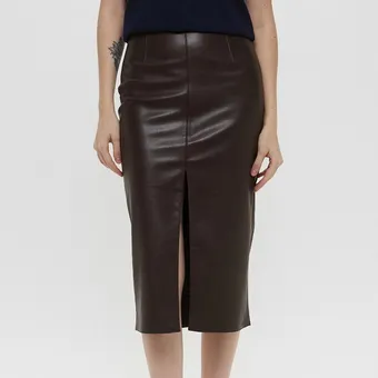 Длина юбки при этом довольно универсальна. Такой крой выглядит классическим (вспомни, мы не раз видели в подобных юбках Кейт Миддлтон), но кожа добавляет вещи немного дерзкого настроения.