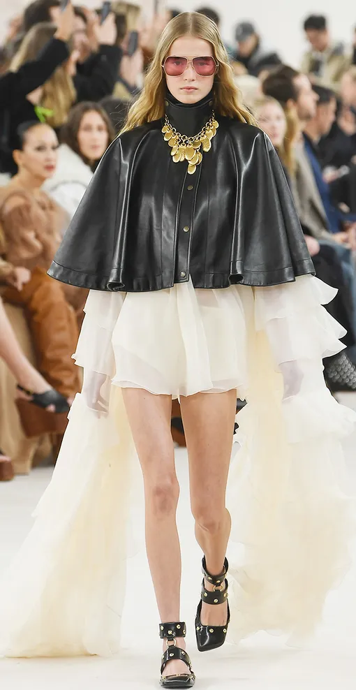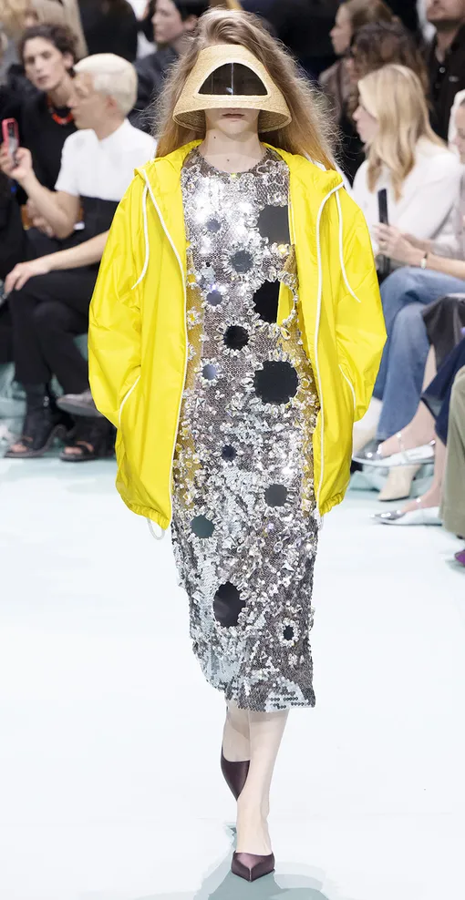 Всё дело в намеренном акцентировании элемента одежды, который выделяется из остального образа. На подиуме мы видели блестящие вечерние платья с обычными парками и ветровками, нежные струющиеся материалы с черной кожей и так далее — чем нарочитей созданный тобой контраст, тем круче.