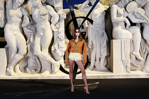 Как этот трюк работает за пределами подиуме, продемонстрировала Хейли Бибер, которая была гостьей показа Saint Laurent в рамках Недели моды в Париже. Модель и модный инфлюенсер пришла в шелковых микрошортах в бельевом стиле и дополнила эту игривую часть образа спортивной ветровкой-бомбером в оранжево-охристой (что может быть лучше для осени?) гамме.