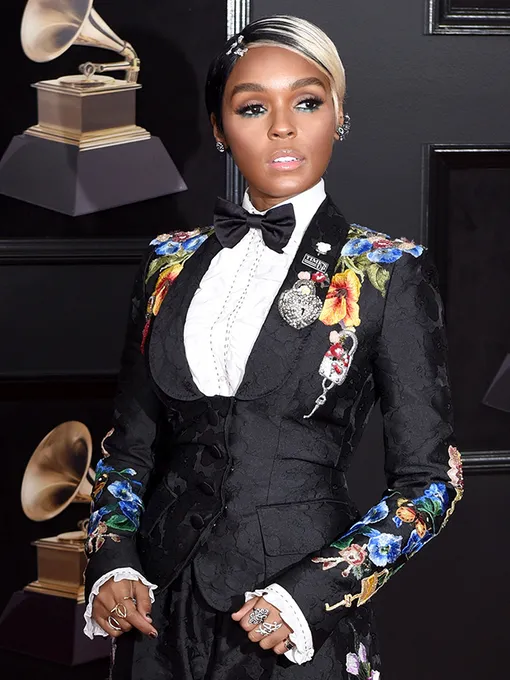 Тот самый случай, когда заключил слишком много контрактов. Певице Жанель Монэ на премию «Грэмми» пришлось надеть всё лучшее сразу: и костюм Gucci, и бриллиантовый кафф, и драгоценную брошь, и сразу несколько колец. Образ завершают значки и заколки из детства.
