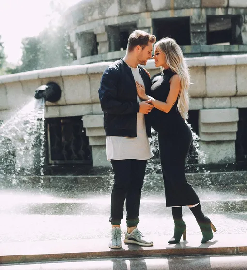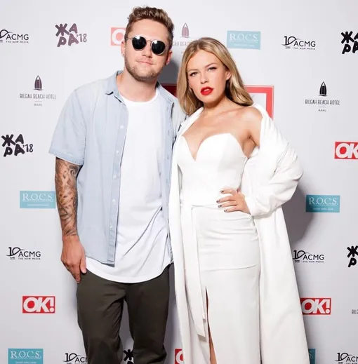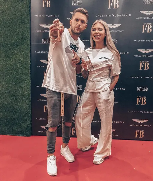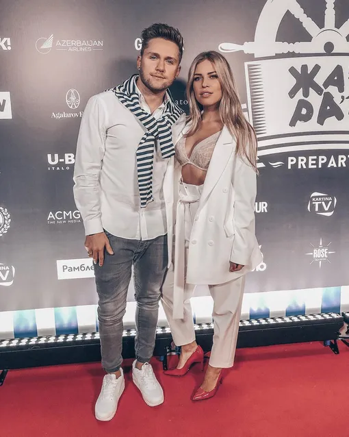 И снова белый и платье по фигуре. Влад же «поддержал» жену черно-белым «луком».