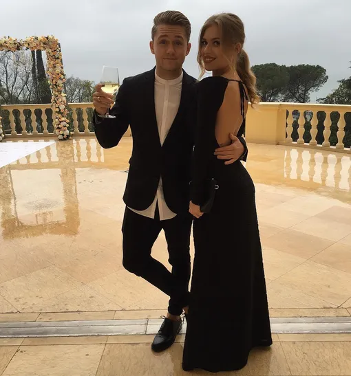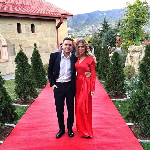 А вот в этом совместном выходе определенно есть диссонанс — костюм Влада выглядит слишком «офисным» и откровенно скучным, а также плохо сочетается с бархатным платьем Риты и ее образом в целом.