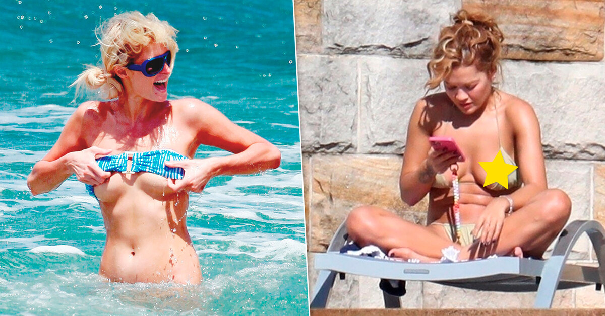 Выскочила грудь, упали плавки: самые громкие конфузы звезд на пляже
