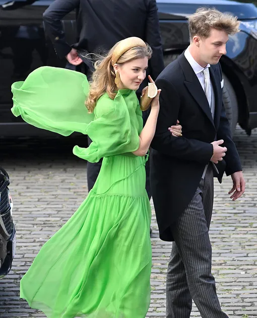 На национальном празднике в 2025 году Елизавета появилась в шифоновом ярко-зеленом платье бельгийского бренда Natan (это, кстати, и любимая марка ее мамы), дополнив образ серьгами Hervé Van der Straete и клатчем Carolina Herrera (аксессуары Елизавета позаимствовала у мамы).