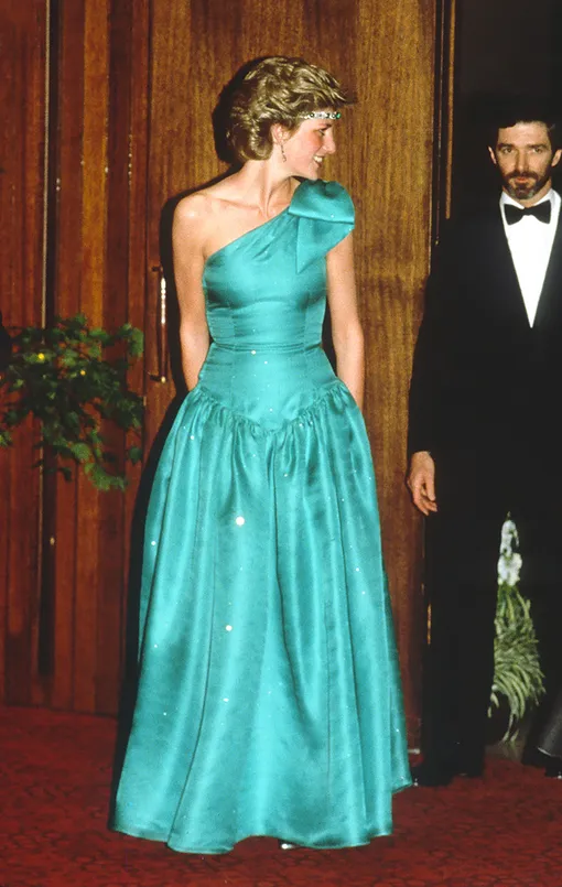На вечере Диана появилась в бирюзовом асимметричном платье, созданном британским дизайнером Элизабет Эмануэль, которая, к слову, была автором и свадебного наряда Дианы. А дополнять наряд должно было ожерелье из бриллиантов и изумрудов, которое изначально принадлежало Марии Текской, супруге короля Георга V и бабушке Елизаветы II.