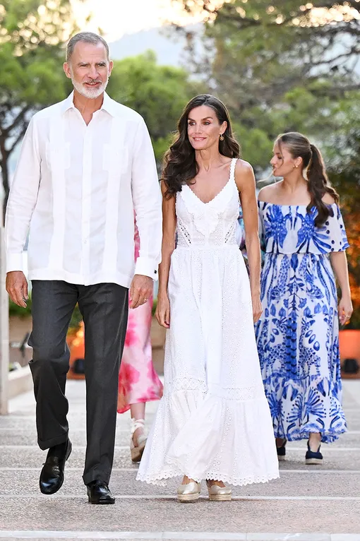 Королева Испании — большая фанатка платьев с перформацией на ткани, и она абсолютно права: в жару лишняя вентиляция не помешает. Романтичные фасоны, рюши и оборки добавят твоему образу курортных вайбов.