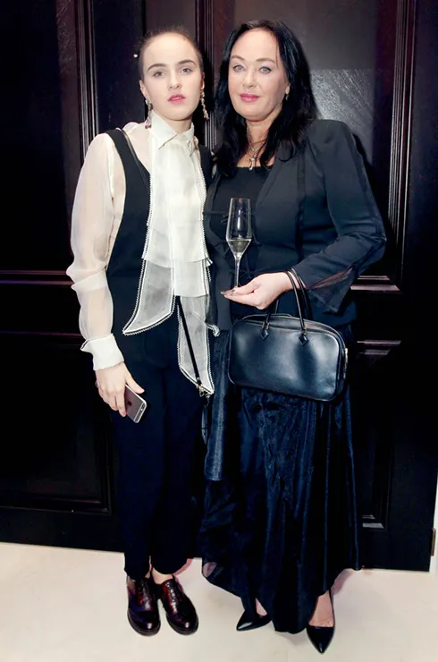 Меховые сабо и кардиган из «шторы» — в эклектичности Гузеевой нет равных (не считая, конечно же, Лены Лениной, позирующей вместе с нашей героиней на этом снимке).
