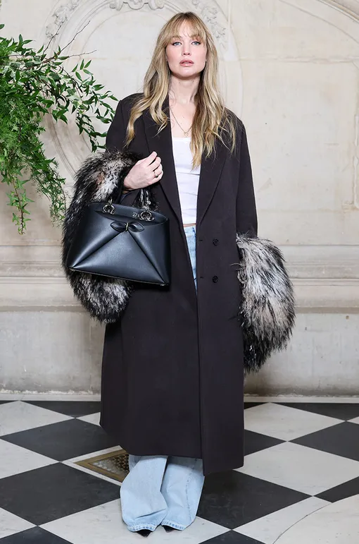 На показе Dior в рамках Недели высокой моды в Париже голливудская актриса появилась в, на первый взгляд, довольно банальном луке: белая футболка, голубые джинсы — что может быть проще?