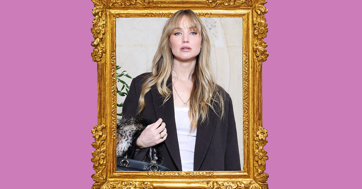 Лоуренс отдала предпочтение удлиненному крою — так называемым джинсам-«лужицам». Такое наименование они получили за счет того, что ткань длинных брючин буквально расплывается под ногами — как лужица.