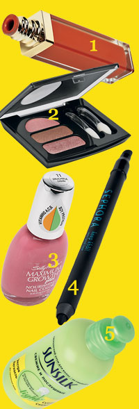 2. ТРИО ТЕНЕЙ Color Appeal Trio Pro «Секреты звезд» №316 от L’Oreal Paris 3. ЛАК ДЛЯ НОГТЕЙ Maximum Growth Plus Nourishing Nail Color №11 от Sally Hansen 4. КАРАНДАШ ДЛЯ ГЛАЗ Keep Khol! №01 от Sephora 5.ЛЕГКИЙ КРЕМ ДЛЯ ВОЛОС «Свежие и Послушные» от Sunsilk |