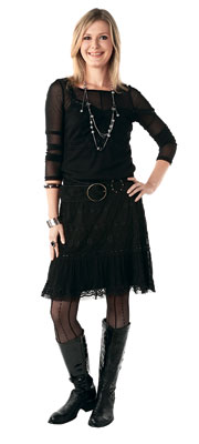 Топ, Veromoda; платье, Oasis; сапоги, «Эконика»; колготки, «Грация»; браслеты и кольцо, Bocasco; ремень, Jackpot