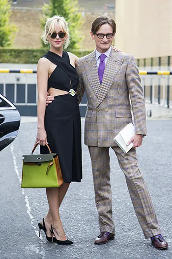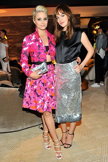 Совсем недавно в США стартовал промо-тур «50 оттенков серого», который негласно начался с появления Дакоты и ее коллеги Джейми Дорнана (Jamie Dornan) на церемонии «Золотой глобус». Тогда актриса заслуженно попала во все списки самых стильных звезд вечера в своем блестящем платье с глубоким разрезом по ноге и пиджаке Chanel Haute Couture. Следующей остановкой промо-тура стал фанатский пред-показ фильма в Нью-Йорке. Для него Дакота вместе со своим стилистом Кейт Янг (Kate Young) подобрали комплект из белого пушистого кардигана с массивными пуговицами и черной кожаной юбки-карандаша из осенней пре-коллекции Balenciaga.