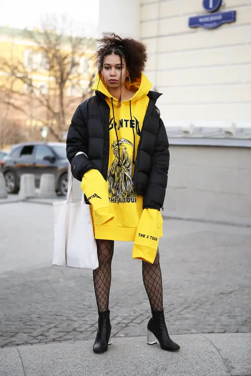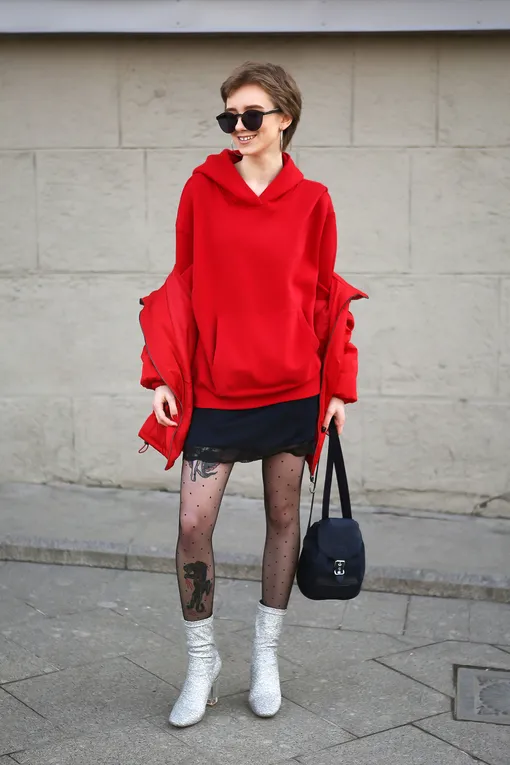 Стильно, молодежно. Мне нравится. Как и в образе с красным худи, здесь нет ничего лишнего, и даже белая авоська смотрится уместно.