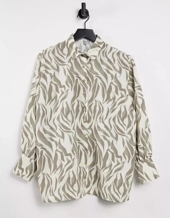 Поклонницам минимализма стоит обратить внимание на блузку рубашечного кроя с нейтральным тигровым окрасом. Она гармонично смотрится с белыми джинсами, повседневными брюками, джинсовыми шортами.