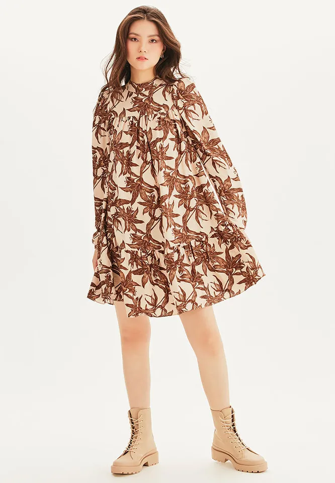 Если любишь свободные силуэты, присмотрись к платью А-силуэта с растительным принтом. Носи его в тандеме с грубыми ботинками — получится стильный контрастный лук.