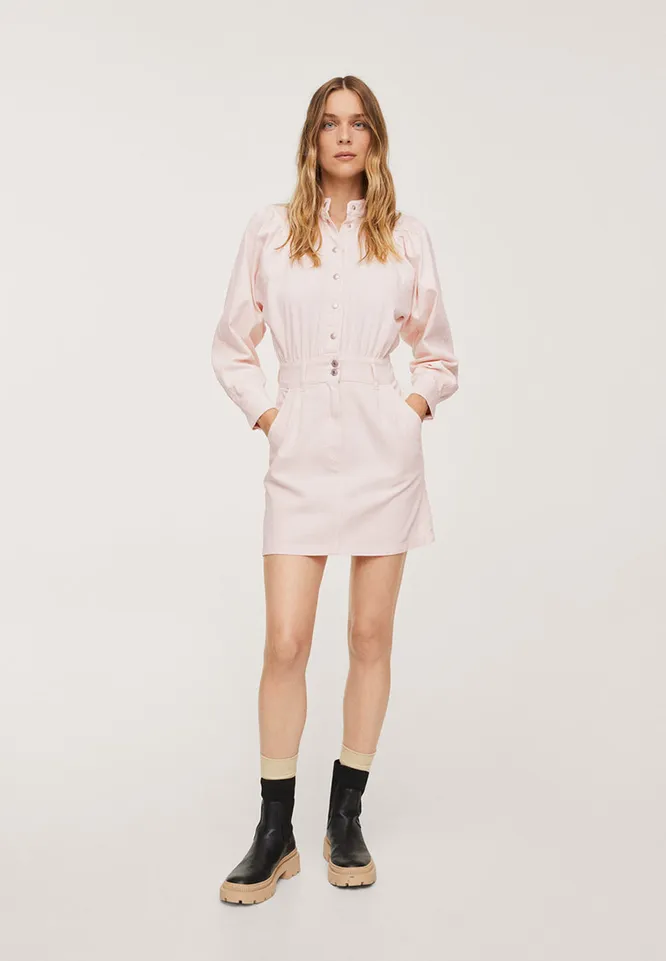 Один из главных мастхэвов осени — платье из денима. Предлагаем отойти от классической цветовой гаммы и выбрать модель нежно-розового оттенка.