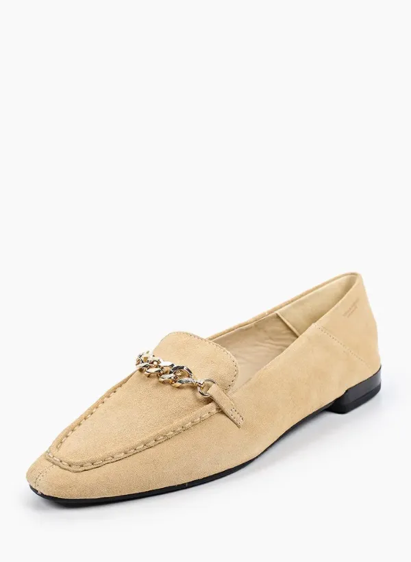Хит сезона — лоферы. Мы выбрали удобную пару из натуральной замши, декорированную минималистичной пряжкой. Они стильно сочетаются с брючными костюмами, базовыми джинсами и белой рубашкой.