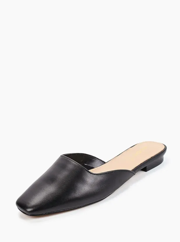 Также отличной альтернативой туфлям станут лаконичные кожаные мюли.