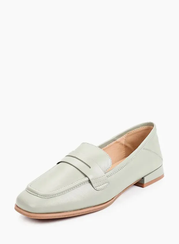Пастельные лоферы из натуральной кожи — универсальная пара обуви на весну и лето. Они одинаково хорошо смотрятся как с платьями, так и с джинсовыми шортами и широкими брюками.