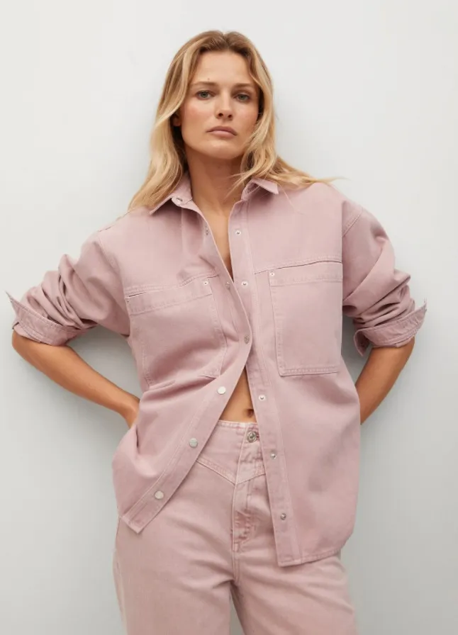 Без джинсовых рубашек этой весной — никуда. Модель пастельно-розового цвета идеально впишется в повседневный гардероб.