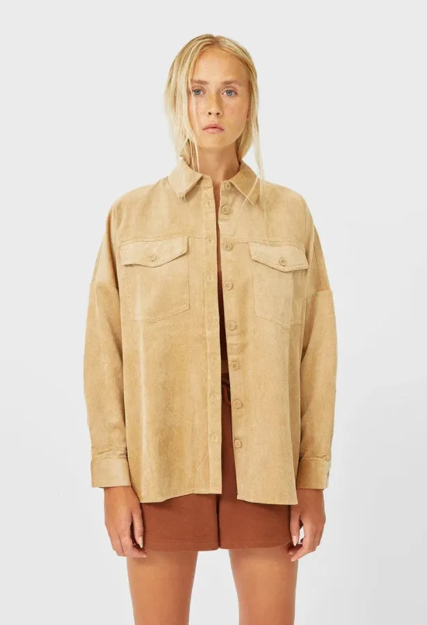 Для создания минималистичных образов выбирай структурированную вельветовую рубашку, которую можно носить и с джинсами, и с джоггерами, и с юбками, и с платьями.