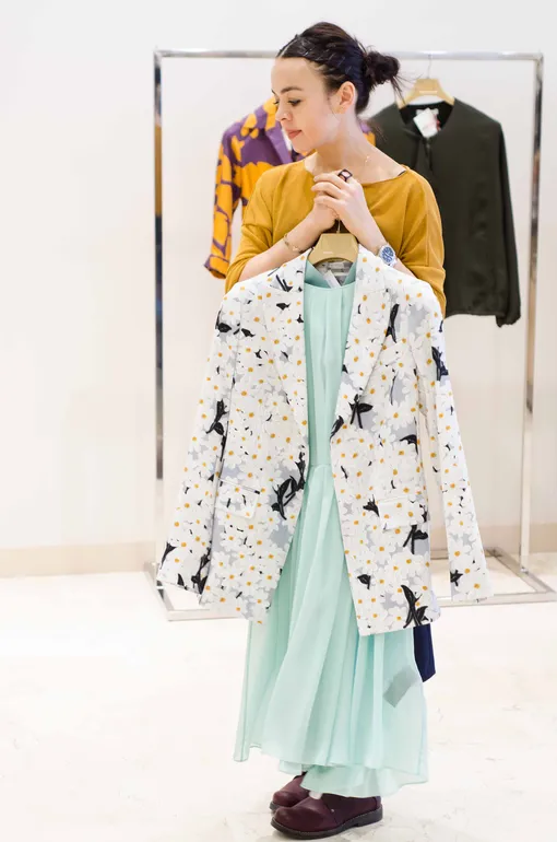 Теплым весенним вечером, на прогулке, свидании или даже на выпускном балу – мятное изящное платье и изысканный жакет, сплошь усыпанный ромашками (Max Mara), не позволят тебе остаться незамеченной в толпе идущих.