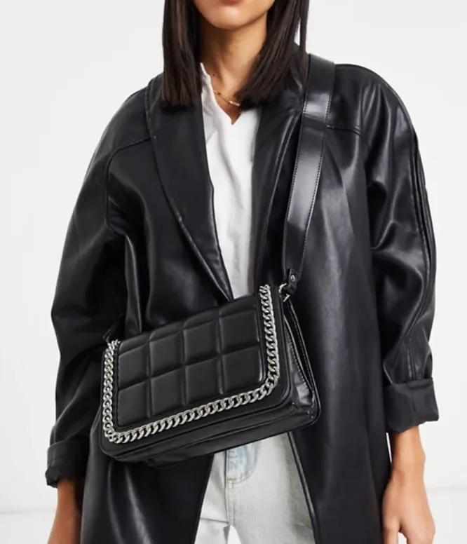 В качестве той самой акцентной сумки идеально подойдет прямоугольная кросс-боди с квадратной стежкой. Сумка органично дополнит и строгие брючные костюмы, и базовые джинсы, и минималистичные платья.