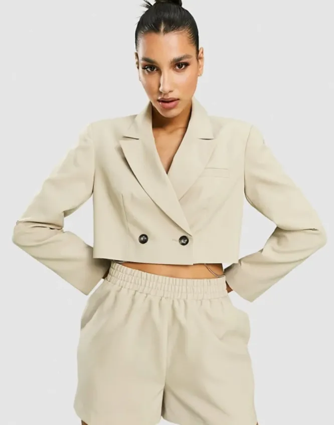 Строгий укороченный пиджак советуем носить с брюками, джинсами и юбками с высокой посадкой. Так пропорции фигуры будут гармоничными, а ноги – визуально длиннее.