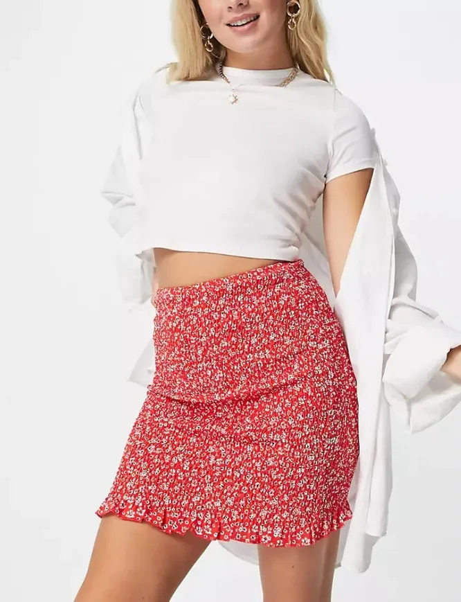 Для создания романтичного образа выбирай юбку с мелким цветочным принтом, оборками и драпировкой. Лучшим дополнением к ней станет топ с квадратным вырезом и рукавами-фонариками.