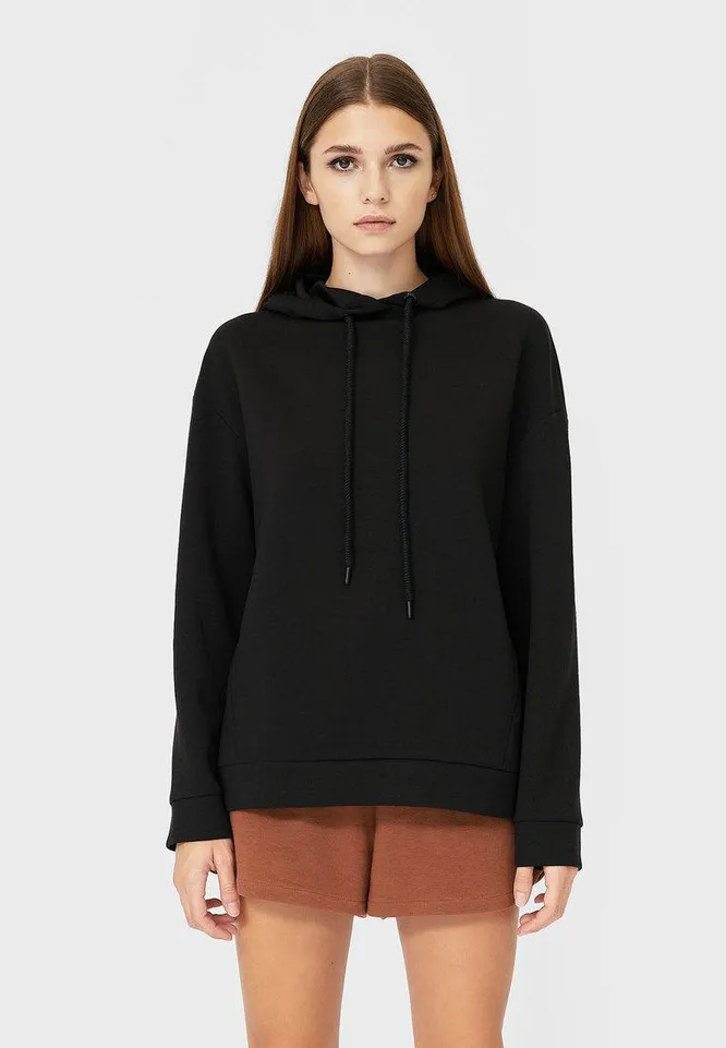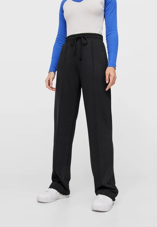 Также среди модных трикотажных костюмов для женщин с брюками мы выбрали этот комплект. Базовое худи, комфортные широкие брюки на резинке с декоративным швом, приятная ткани и универсальный черный цвет – этот ансамбль станет твоим лучшим компаньоном этой зимой. Предлагаем носить костюм с грубыми ботинками на толстой подошве или утепленными кроссовками и оверсайз-пуховиком.