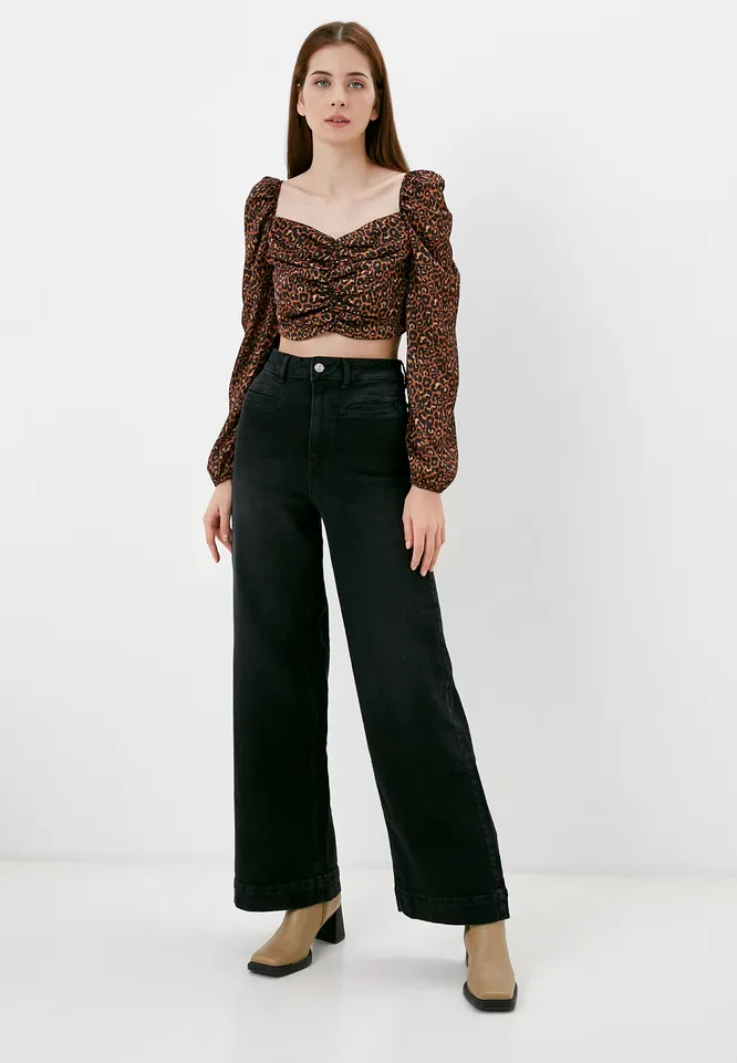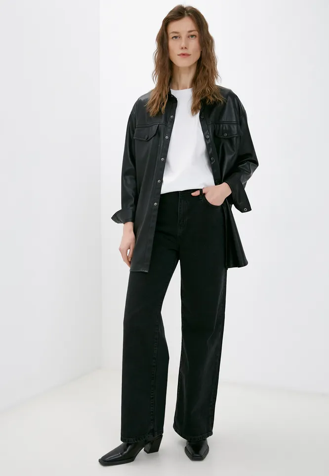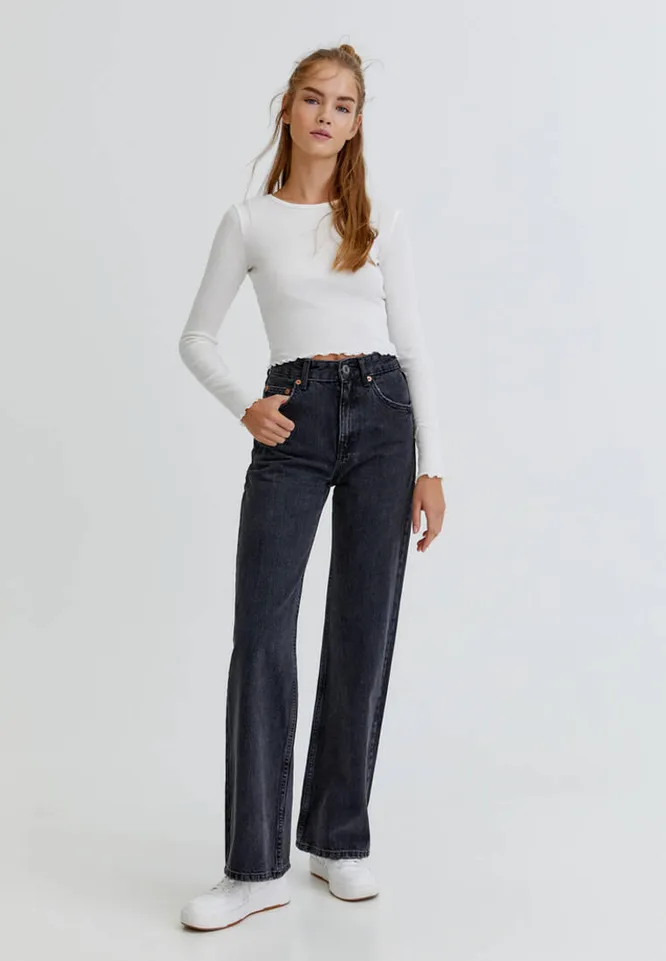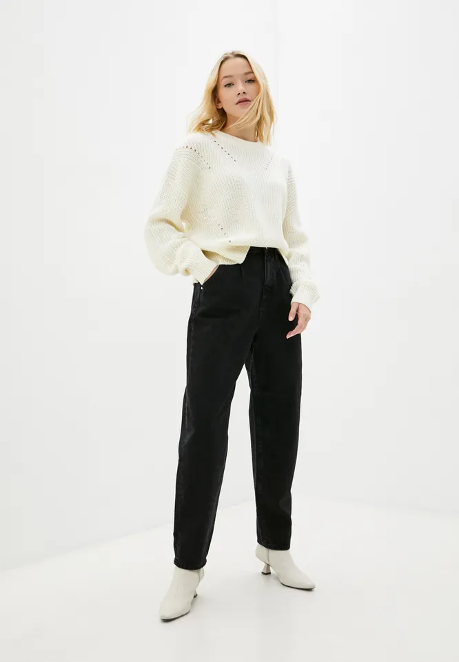 Отлично смотрятся черные широкие брюки расклешенного кроя. Чтобы их сбалансировать, надевай облегающий верх, например водолазку или тонкий джемпер. Если ты поклонница оверсайза, то сочетай модные черные женские широкие джинсы со свободным джемпером на молнии.