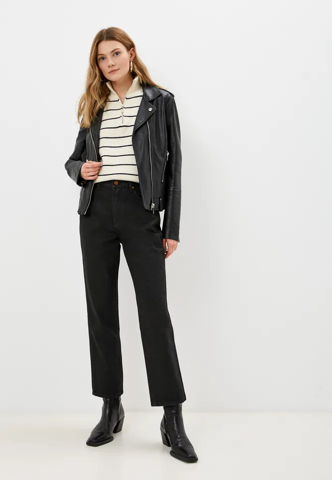 Если у тебя есть черные укороченные джинсы прямого кроя, предлагаем сочетать их с объемным свитером или свободным джемпером на молнии. Чтобы визуально удлинить ноги и вытянуть рост, дополняй джинсы высоким ботинками в тон на толстой подошве.