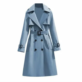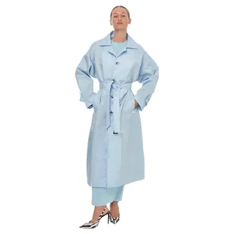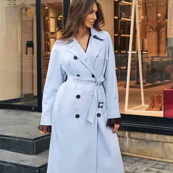 Не забывай о том, что приглушенный голубой почти со 100-процентной гарантией впишется в твою сезонную капсулу, так что раздумывать стоит только над моделью самого плаща. Классические тренчкоты в ледяном голубом – выбор безошибочный, тут не прогадаешь. Но можно попробовать и кое-что новенькое!