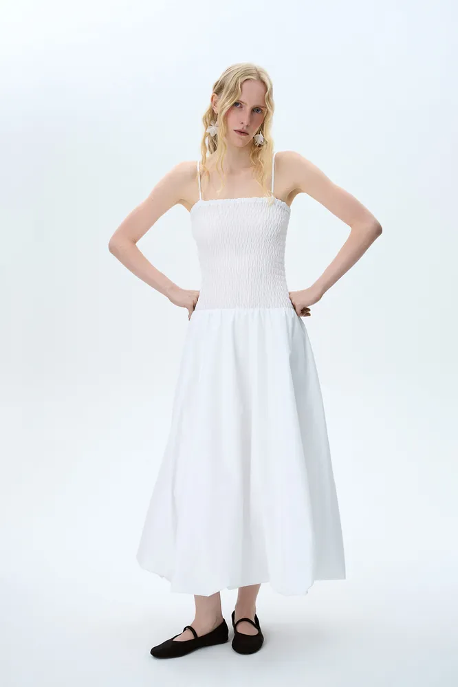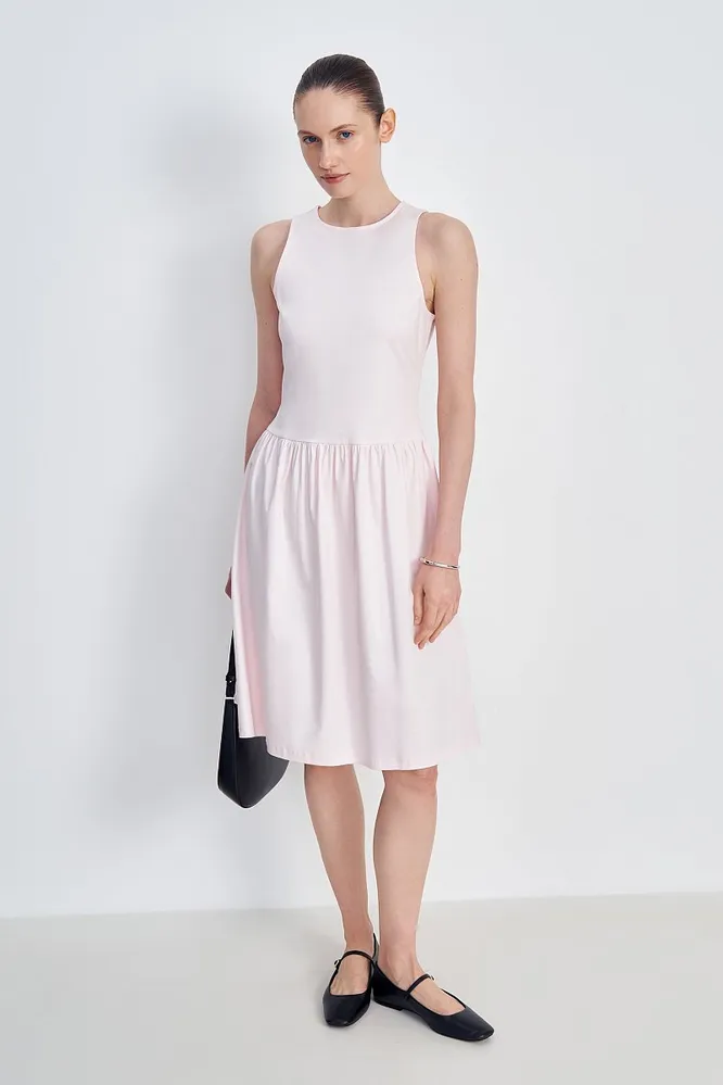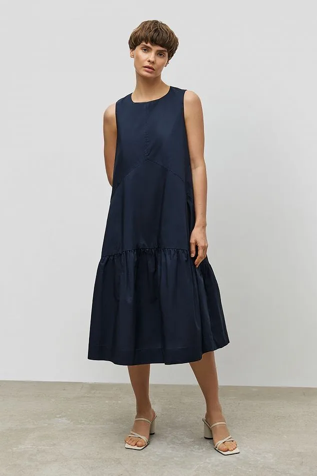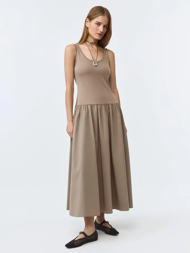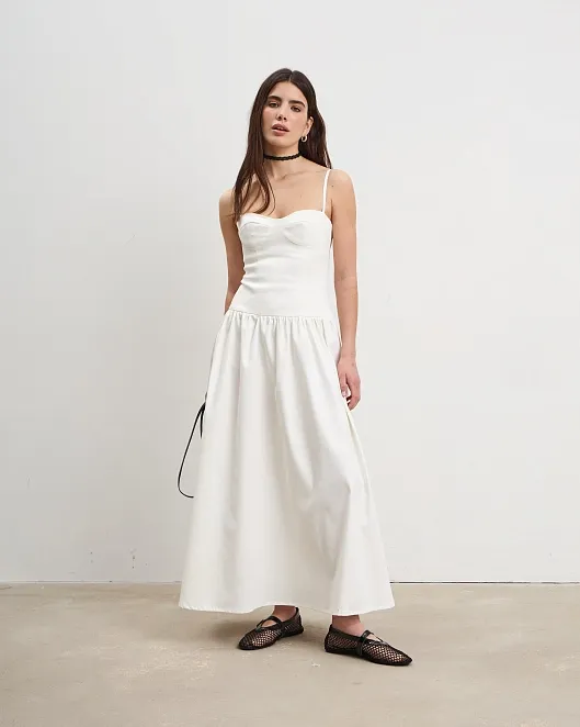 Причем сам фасон платья не так уж и важен. Это может быть и мини-сарафан, и миди с юбкой-баллоном, и классический А-силуэт. Главное, чтобы линия стыка юбки и лифа была четко видна и начиналась ниже, чем реальная талия. Механика проста!