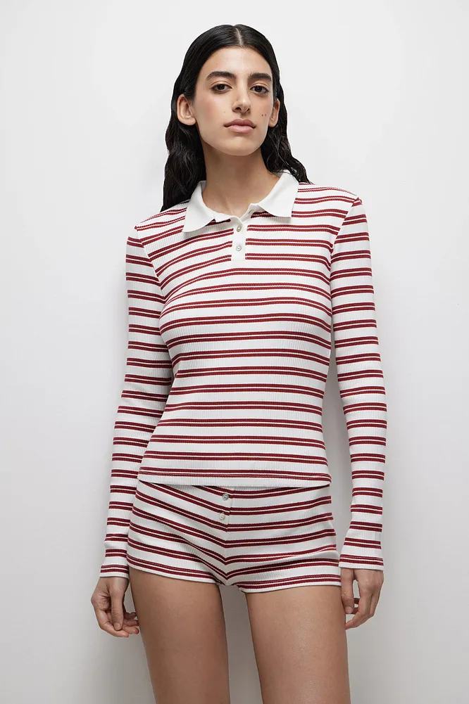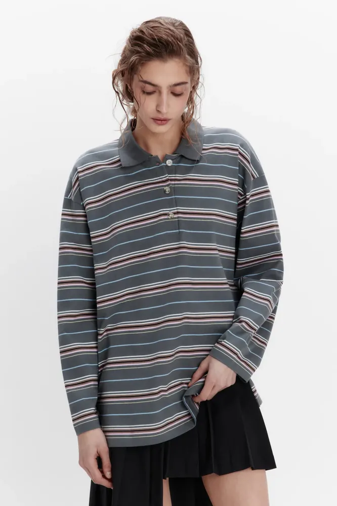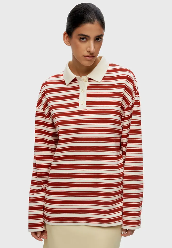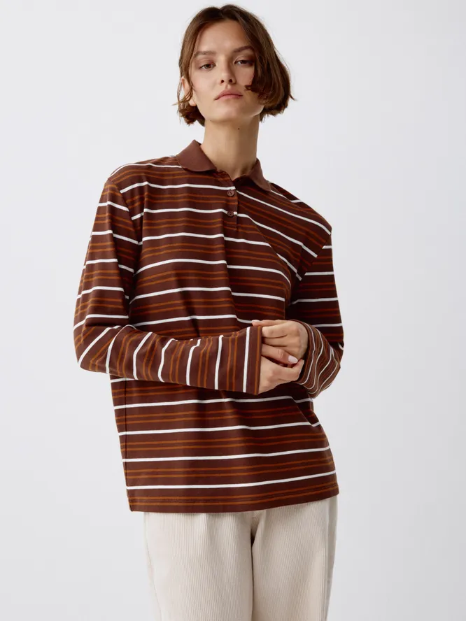 Хороши лонгсливы-поло (их еще, кстати, называют регбийками) тем, что заменяют базовые футболки. То есть ты буквально можешь носить их с проверенными аутфитами, просто меняя топ на лонг-поло – и все дела. Благодаря полоске и воротнику в аутфит добавляются интересные, но не кричащие детали. Ты изменила не так уж много, а результат разительный.